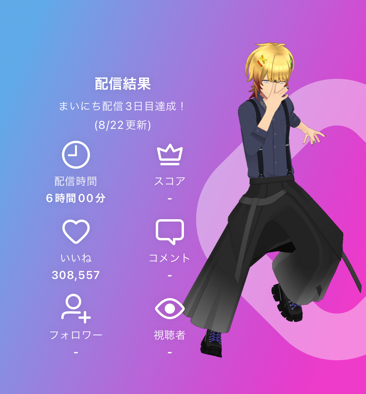 8/22 目指せ!いいね50万! 15:30〜21:30