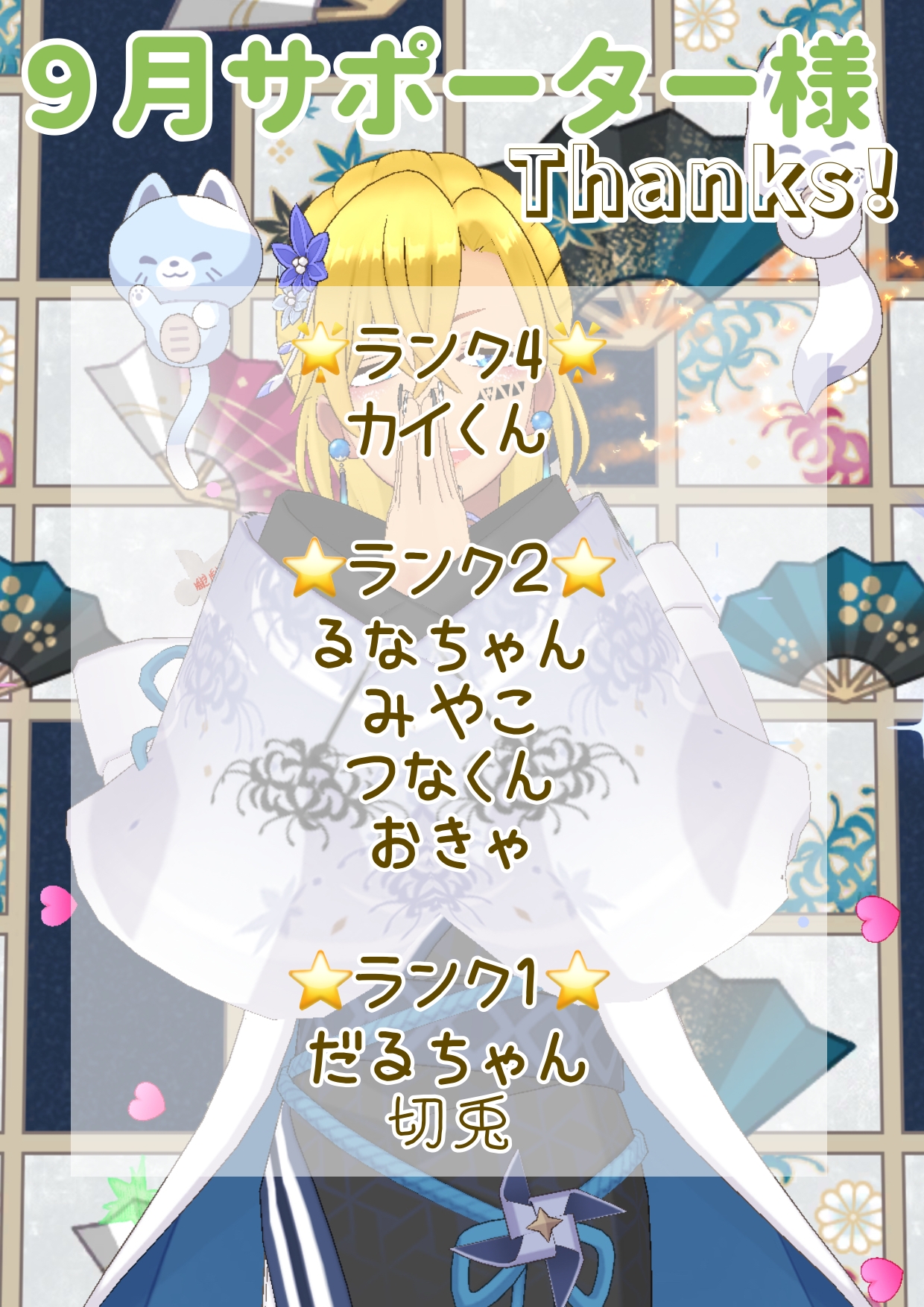 翔 @wwx_show 2025年10月6日(月) 23:53 142日前 お知らせ ⭐️9月サポーター様⭐️ ⭐️9月サポーター様⭐️ 9月は体調壊しちゃったから、あんまり枠できなかった💦 みんな見守ってくれてありがとう🙇 そしてサポーターになってくれたみんな、ありがとう🙏✨ みんなに支えられて頑張れてます! そしてAランクにもなれました☺️ いつも大事な時間を使って会いに来てくれてありがとう! #サポーター